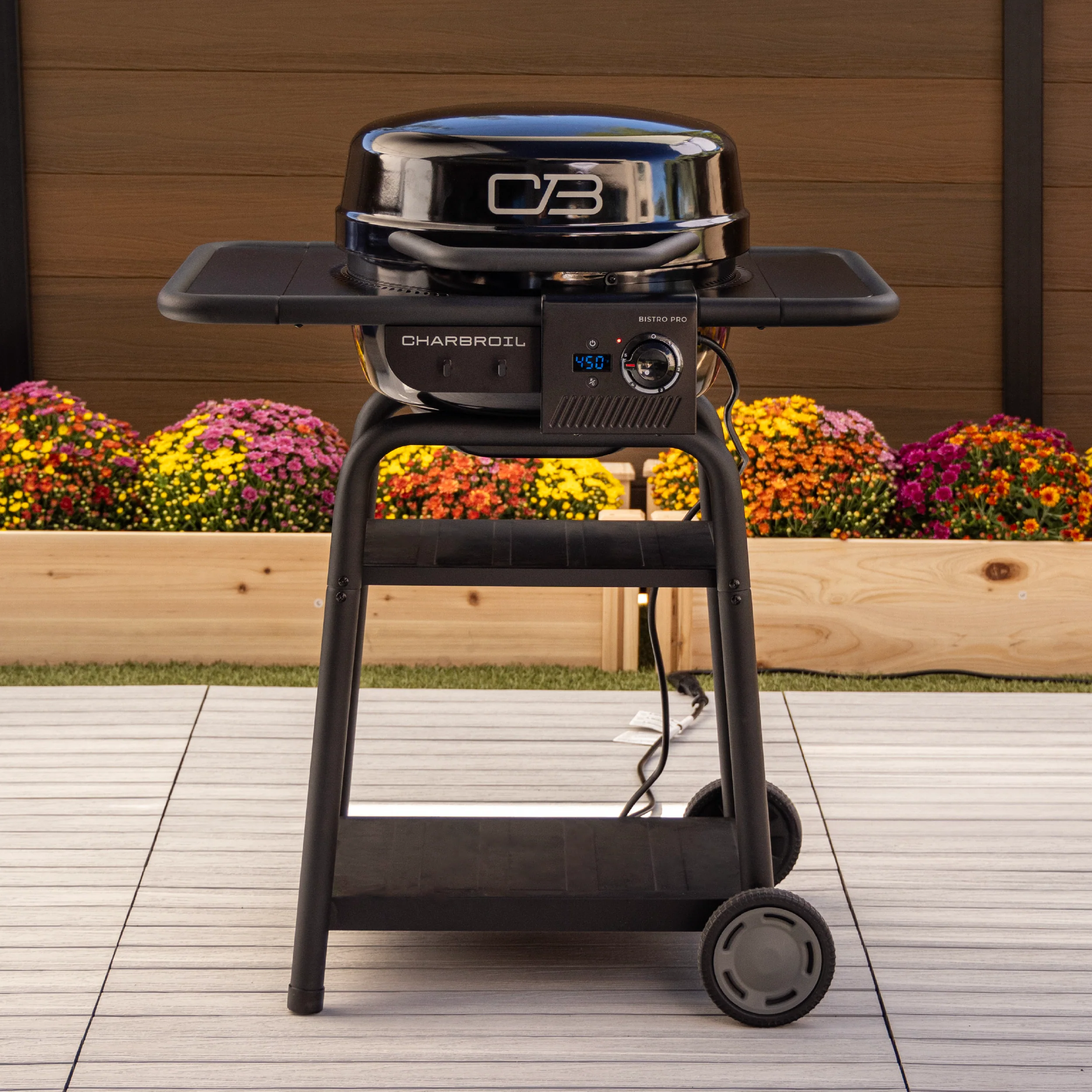 been easier for the grilling novice or pro. The Charbroil® Bistro Pro™ Electric Grill + Charcoal Mode is the ultimate small space grill that features our dynamic Electric2Coal™ cooking system, which uniquely allows you to switch between electric and charcoal grilling. With its high max temperature, this electric grill offers endless grilling opportunities to cook anything from juicy burgers to seared steak to roasted veggies.