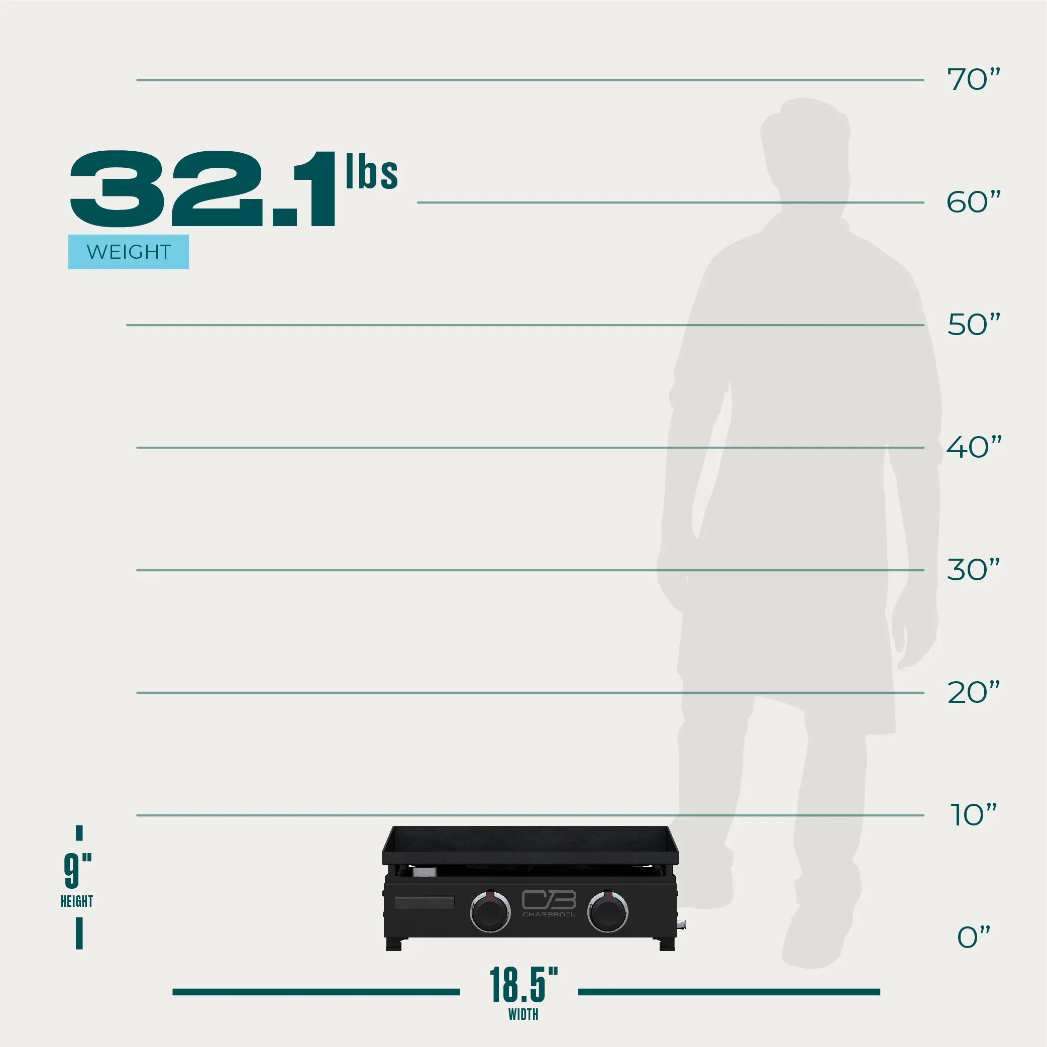 The portable Charbroil® 22" Performance Series™ 2 Burner Tabletop Gas Griddle makes it easy to cook breakfast, lunch, or dinner wherever your next adventure takes you. Start your tailgate party with a batch of crackling bacon and fluffy pancakes! Our wind-blocking tabletop gas griddle enables you to efficiently cook with even, high heat and will conserve your fuel to help feed your hungry crew throughout the day. The anti-warping and adjustable griddle top ensures you can evenly cook hibachi-style fried rice, cheesesteaks, or corn on the cob, with the added bonus of one-handed leveling or tilt adjustments. After a day of fun and good eating at the park or campground, easily remove the grease tray and load your portable tabletop gas griddle back into the car, without a mess, no problem.
