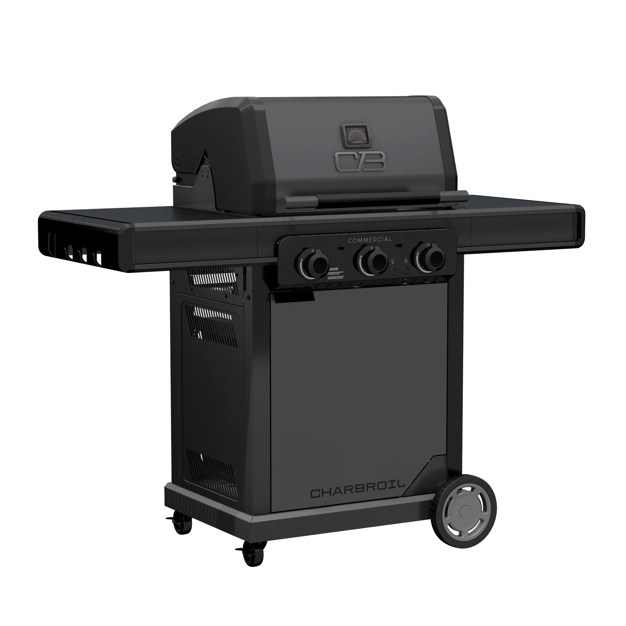 The Charbroil® Commercial Series™ Black 3 Burner Gas Grill & Griddle is designed for the versatile backyard griller who wants to broaden their culinary horizons…Effortlessly transform this space-efficient 3 Burner backyard appliance to a grill, griddle or charcoal grill (Gas2Coal® charcoal tray sold separately). Want to sear steaks to caramelized perfection on the grill, cook up a batch of melted cheesesteaks for the family on the griddle, or slow things down with smokey, charcoal-infused BBQ platter for this weekend’s get-together? Now you can. In less than 60 seconds, you can switch between cooking modes to serve a one-of-a-kind menu that’ll have people talking until your next epic meal. Embrace the versatility of the Commercial Series™ 3 Burner Gas Grill & Griddle and discover that the cooking possibilities are endless.