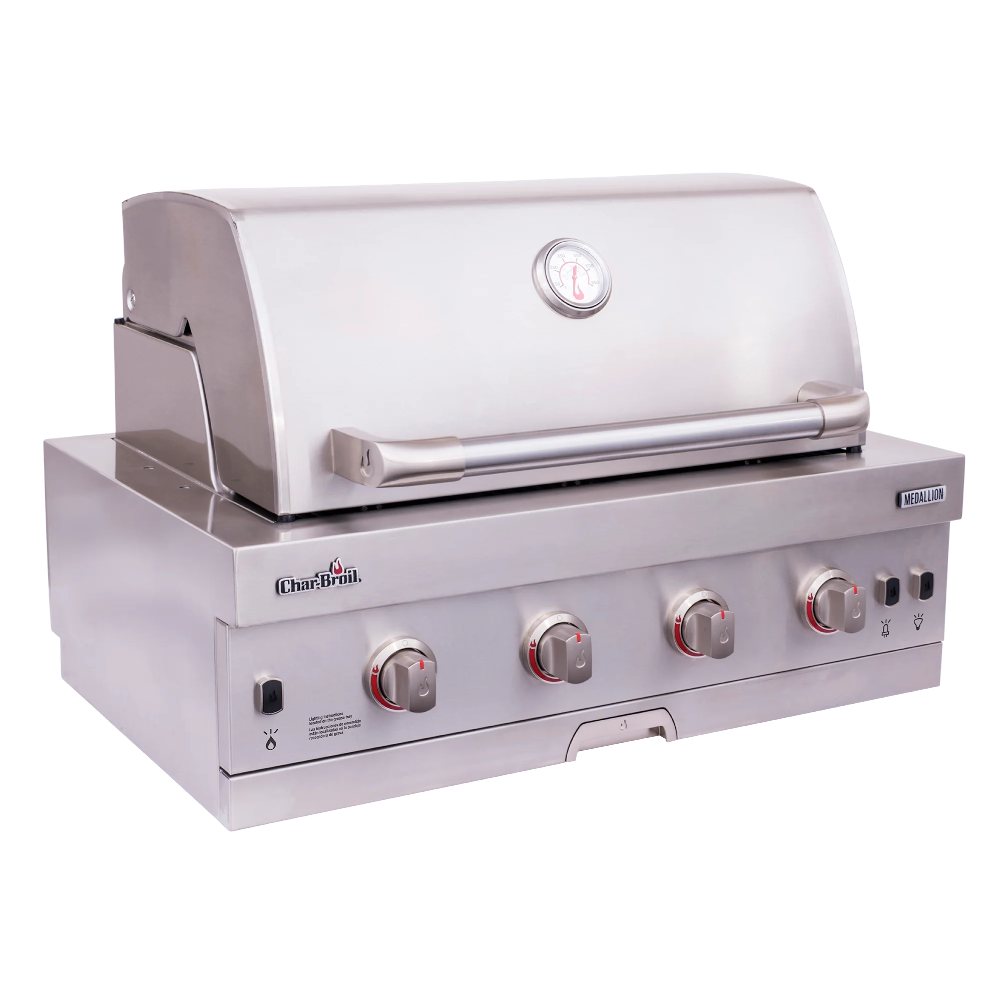 Complete your built-in outdoor kitchen with the Char-Broil® Medallion Series™ 4-Burner Gas Grill. Designed with performance in mind, this grill is packed with features like solid, stainless steel grates and zonal cooking. The stainless steel construction creates a sleek appearance while offering durability to withstand the elements. Other features like a lighted cooking space, LED control knobs and a front-removable grease tray add convenience. Simply fire-it-up with SureFire® electronic ignition and enjoy outdoor grilling at its finest.