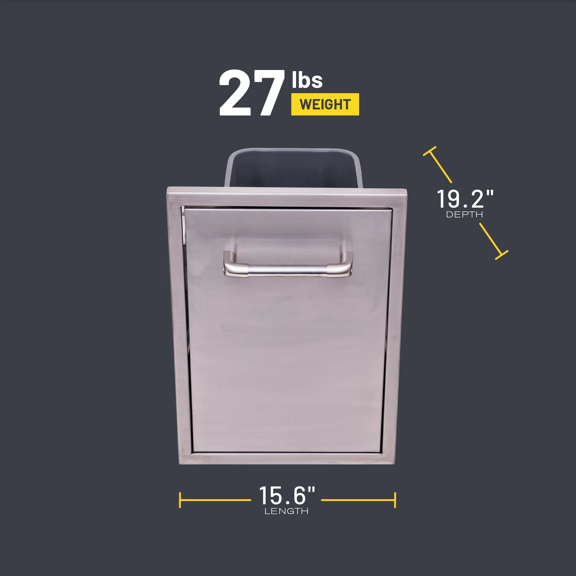 Integrate this storage drawer to easily hold a trashcan or stow a liquid propane tank for your Char-Broil® Medallion Series™ Built-In outdoor kitchen. Featuring a galvanized outer cabinet, sturdy handle with die-cast end caps and stainless steel construction, this drawer is designed to stand-up to the elements. Built with versatility and size in mind, this storage drawer has full-extension drawer slides for enhanced accessibility, putting the finishing touch on your outdoor cooking space.